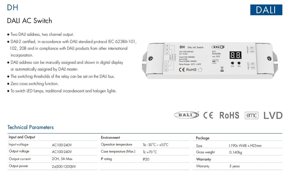 Aplicación:utilizado para luces LED con atenuación DALI