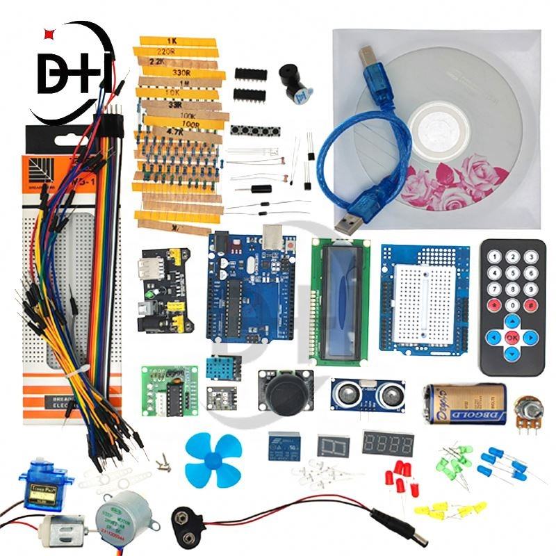Kit de Inicio DH Super con Placa de Pruebas, Pantalla 1602 IIC, Juego de Cables Jumper R3 para Arduino UNO con Tutorial, Kits Educativos