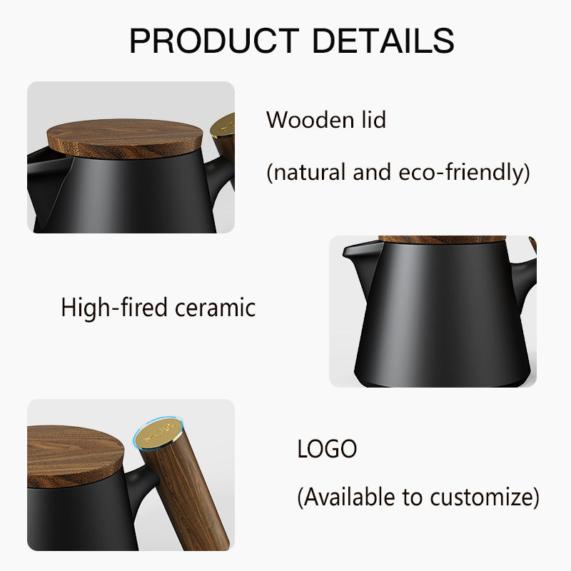 Nombre del producto:Tetera con mango de madera, hervidor de cerámica verde, juego de tetera de porcelana