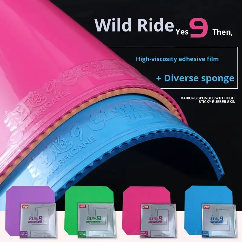 Raqueta de Tenis de Mesa DHS Hurricane 9, Marco de Fibra de Carbono, Duradera, Ecológica, Resistente, Rojo, Azul, Verde Fruta, Rosa Melocotón, Deslumbrante