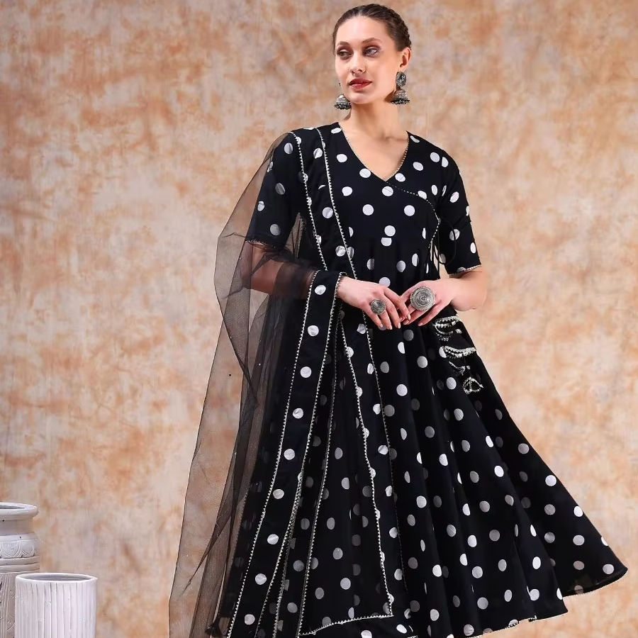 Conjunto de Angrakha con Estampado de Lunares DIL KASH para Mujer, Conjunto de Kurta y Dupatta de Georgette, Ropa Étnica Elegante, Conjunto de Moda Festiva para Fiesta 2025