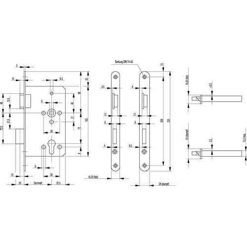 Cerradura de Embutir para Puerta Interior DIN Izquierda Plateada Redondeada Clase 3 de Zinc Fundido a Presión BKS 515 PZ 20/55/72/8 mm, Candado de Seguridad para Bicicleta