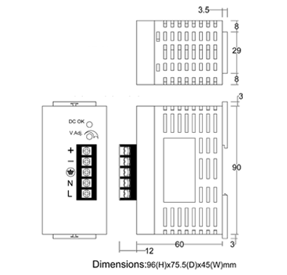 Dimensión:75(D)x45(W)x96(H) milímetro