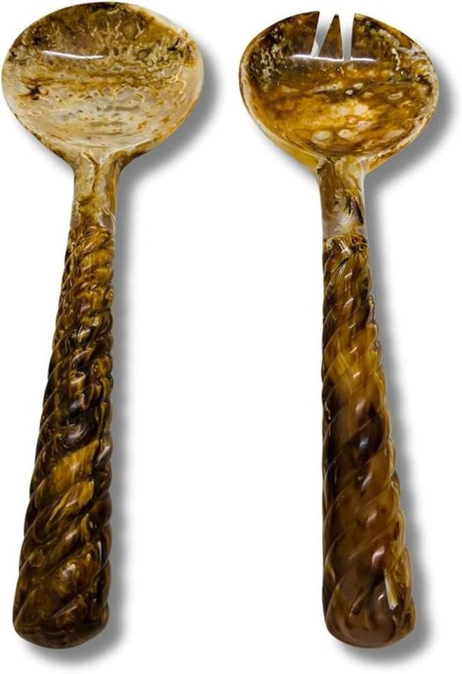 Cucharas de Resina Hechas a Mano Estilo Cena, Juego de Cucharas Decorativas para Servir Ensaladas, Tenedores y Cucharas para Mezclar Ensaladas con Mango