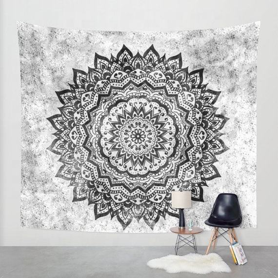 BLACK JEWEL MANDALA Bohemian Wall Tapestry