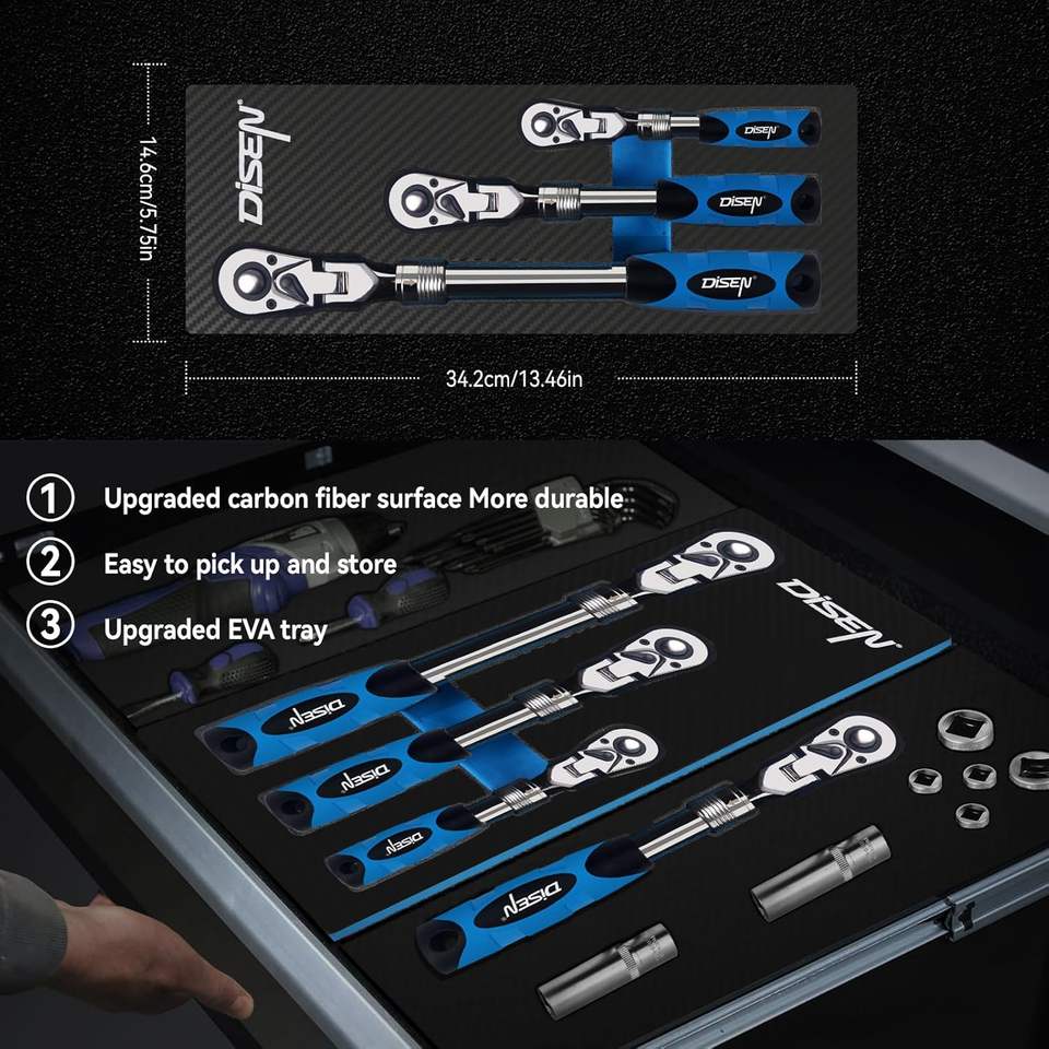 DISEN Juego de Llaves de Trinquete Reversibles de 12 Piezas, Llave Combinada Métrica de 8-19MM, Diseño de Manivela de Acero Niquelado de 72 Dientes, de 2 Piezas