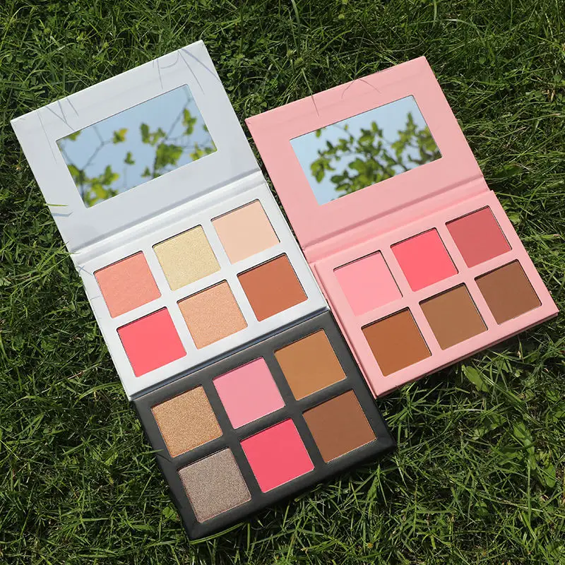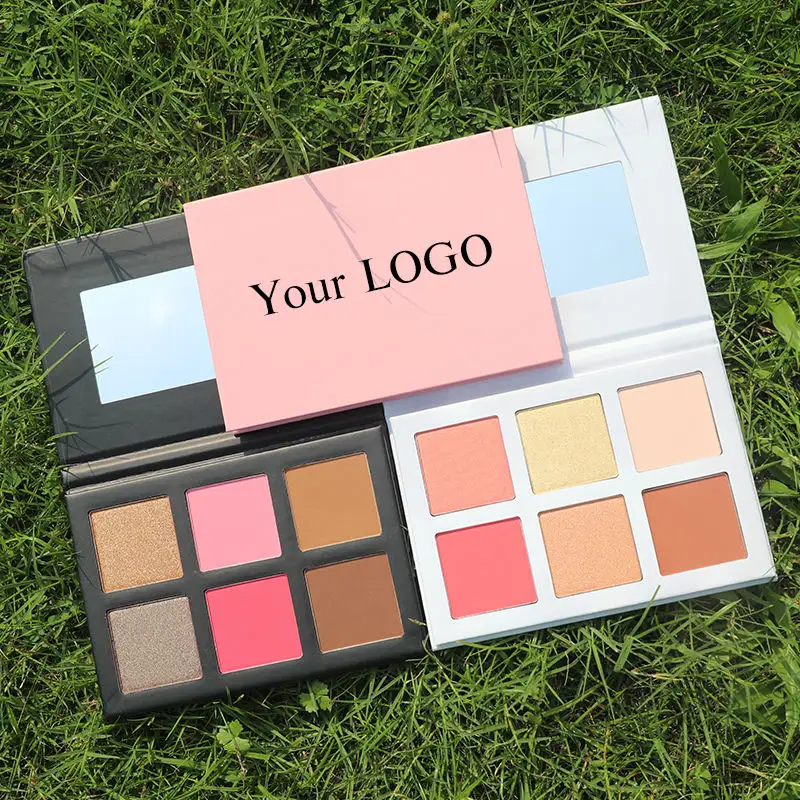 Paleta de colorete de maquillaje pigmentado de 6 colores, resaltador de contorno, colorete en un logotipo personalizado, forma de polvo prensado