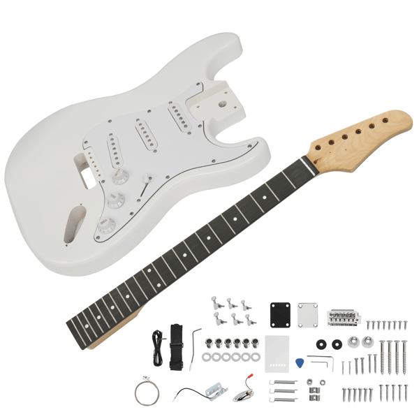 Kit de guitarra eléctrica estilo ST de 6 cuerdas DIY con cuerpo de caoba, mástil de arce, accesorios blancos, piezas y accesorios para instrumentos de cuerda