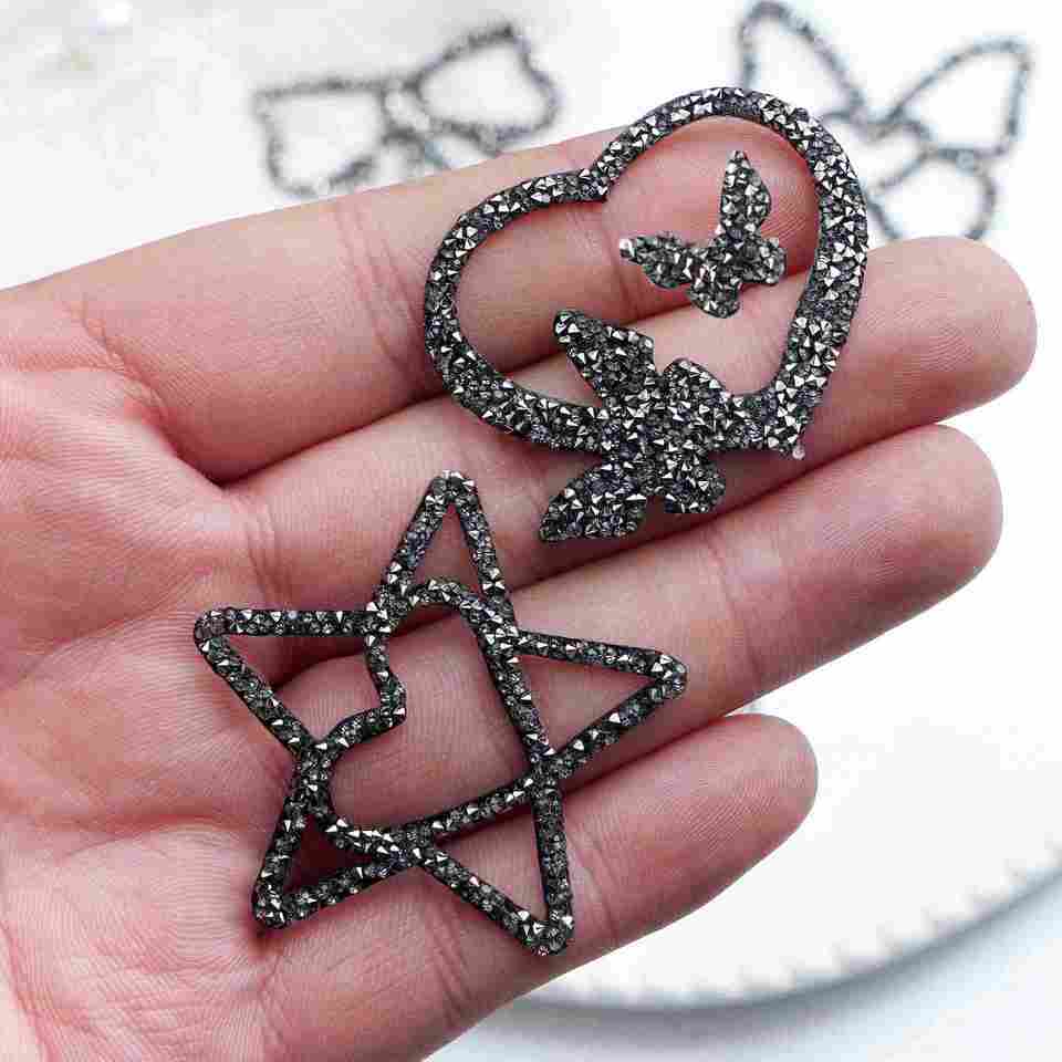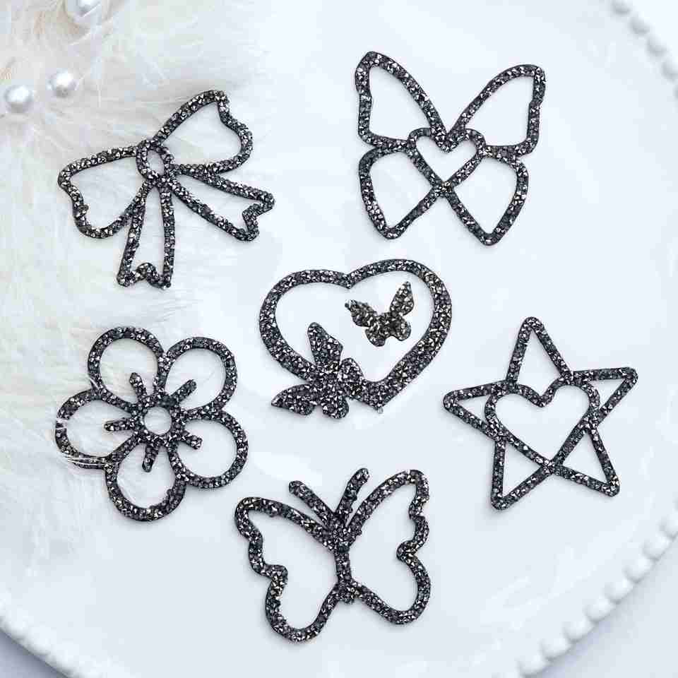 DIY Accessories Iron on /self Sticker Rhinestones Hollow Series Bowknot Star butterfly Heart Patch for Bag Decorations