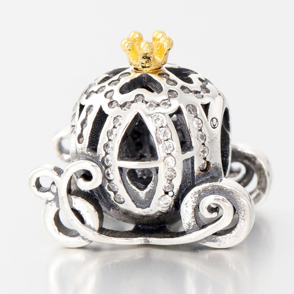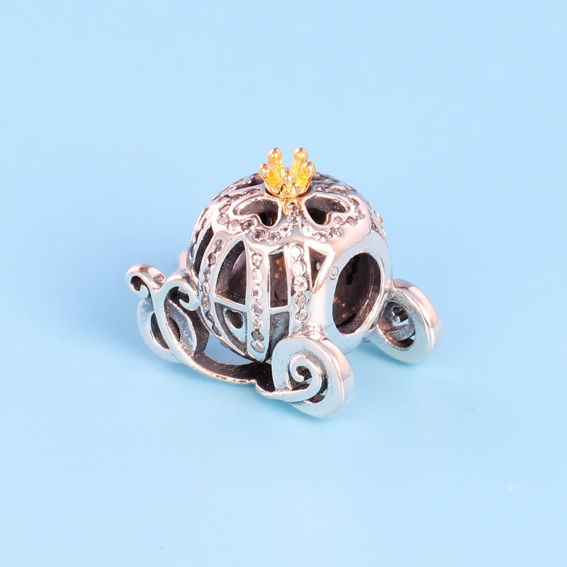 Accesorios DIY, Dije de Calabaza Princesa Chapado en Rodio para Pulsera, con Cuentas de Circonio Personalizadas para Exportación