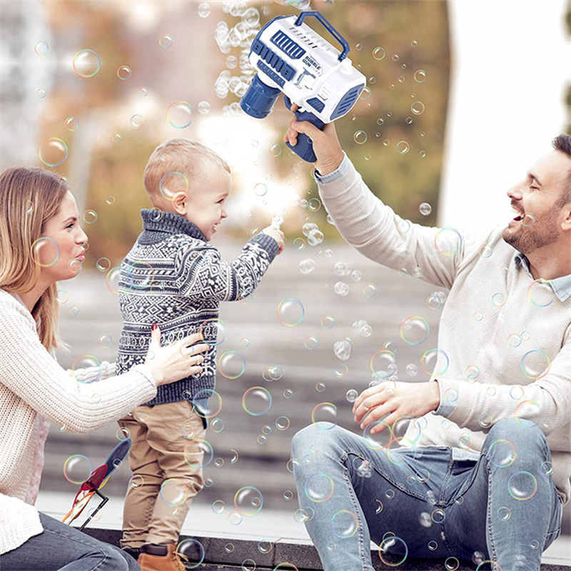 Máquina sopladora de burbujas automática DIY, juguetes de pistola de burbujas de 24 agujeros, lanzador de cohetes creativo, juguete de agua y jabón para niños