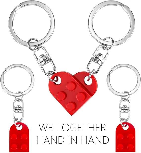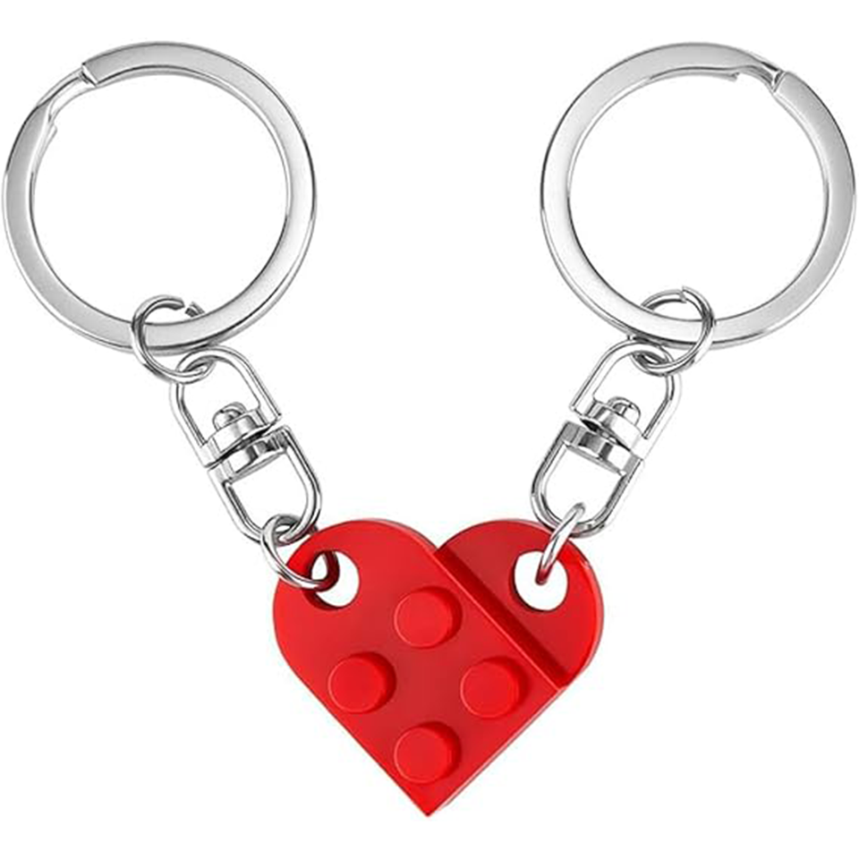 Llavero de Corazón de Ladrillos DIY, Bloques de Construcción Acrílicos, Rompecabezas, Llaveros de Amor para Parejas, Set a Juego para Novio y Novia