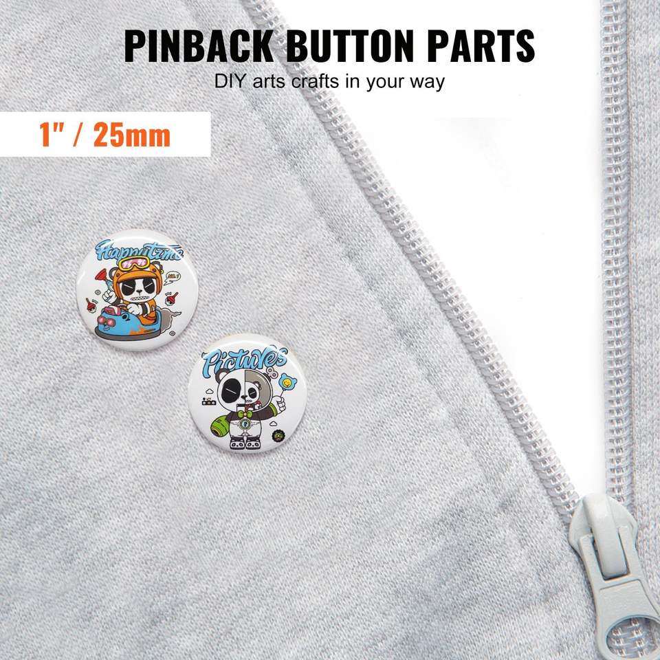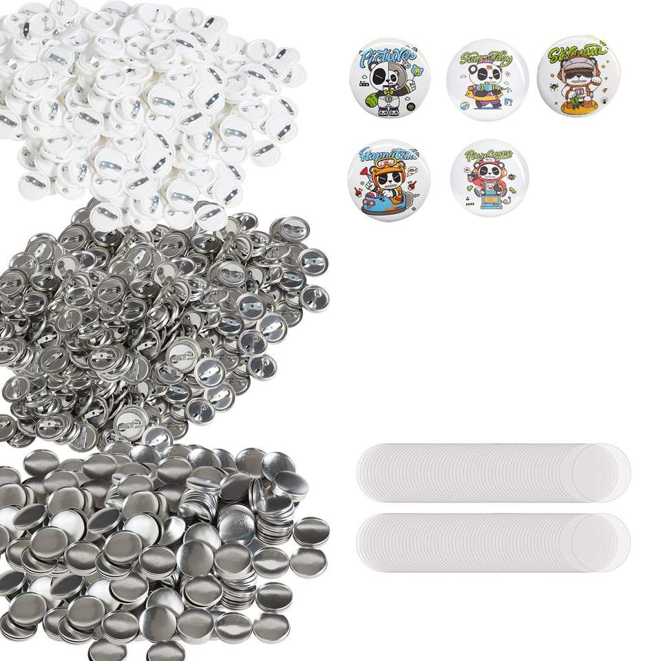 Kit de 500 piezas para hacer insignias DIY, 25mm (1 pulgada), con parte trasera de broche, incluye parte superior metálica, botón de plástico/metal transparente F para manualidades