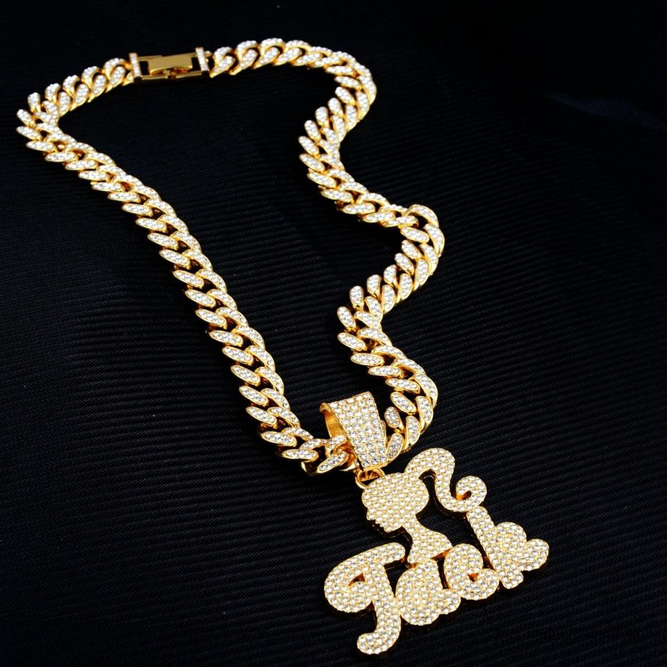 Colgante Personalizado de Letras Mayúsculas y Minúsculas con Botones, Joyería Hip Hop Creativa con Doble Circonita y Cadena de Cuerda