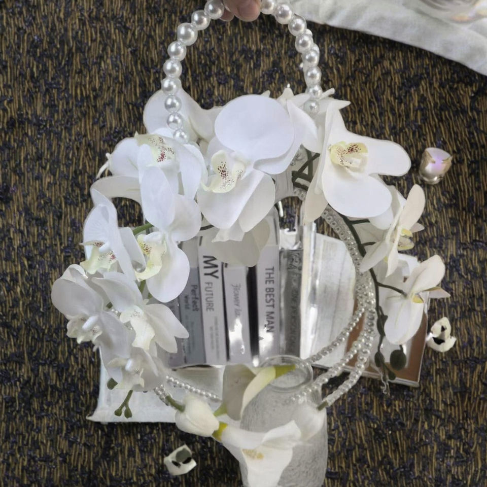 Ramo de Novia con Lirios de Cala y Orquídeas, Estilo Cascada, Hecho a Mano, con Cordón, Sellado, Accesorios para Fotos, Decoración, Regalo