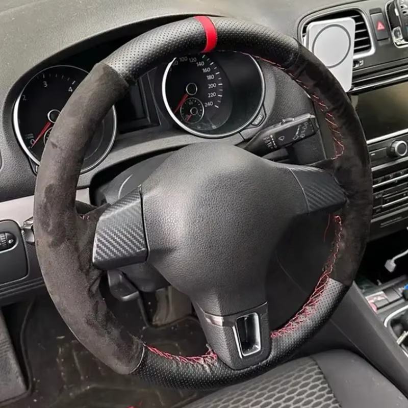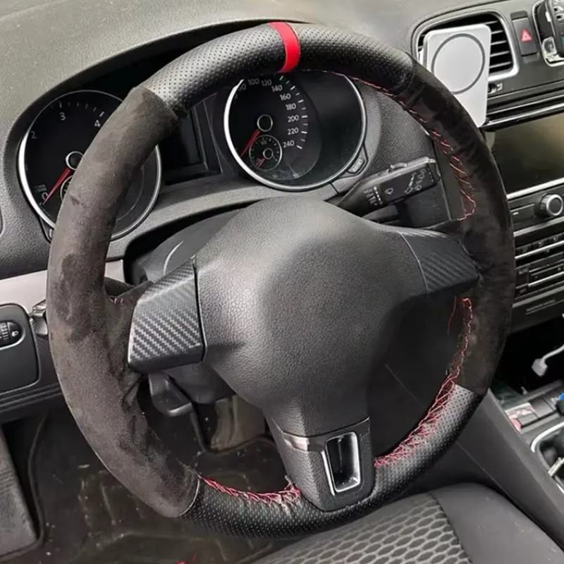 Funda para Volante de Coche DIY, Antideslizante, de Gamuza, Trenzada, Original, para Volkswagen Polo Golf 6 Mk6 MK5, Accesorios para Coche