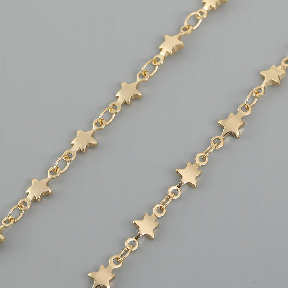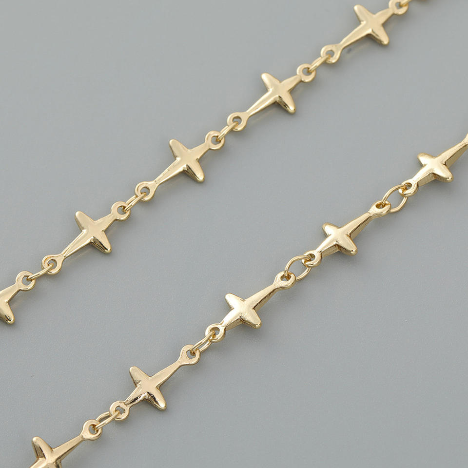 Cadena de cadena puntiaguda hecha a mano, accesorios de collar, cadena de estrella chapada en oro, venta al por mayor, cadena cruzada, pequeña estrella