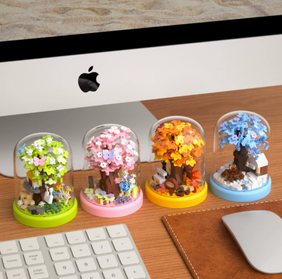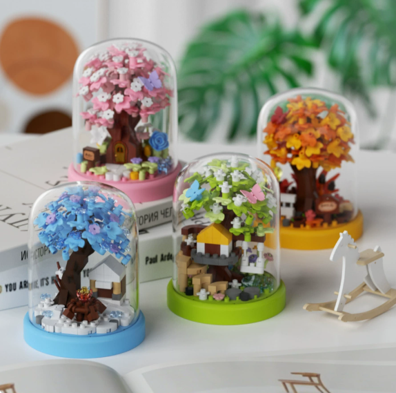Bloques de Construcción Educativos DIY de Micropartículas, Casa del Árbol de las Cuatro Estaciones, Modelo de Juguete de Ensamblaje con Vista a la Calle, Plástico ABS para Unisex