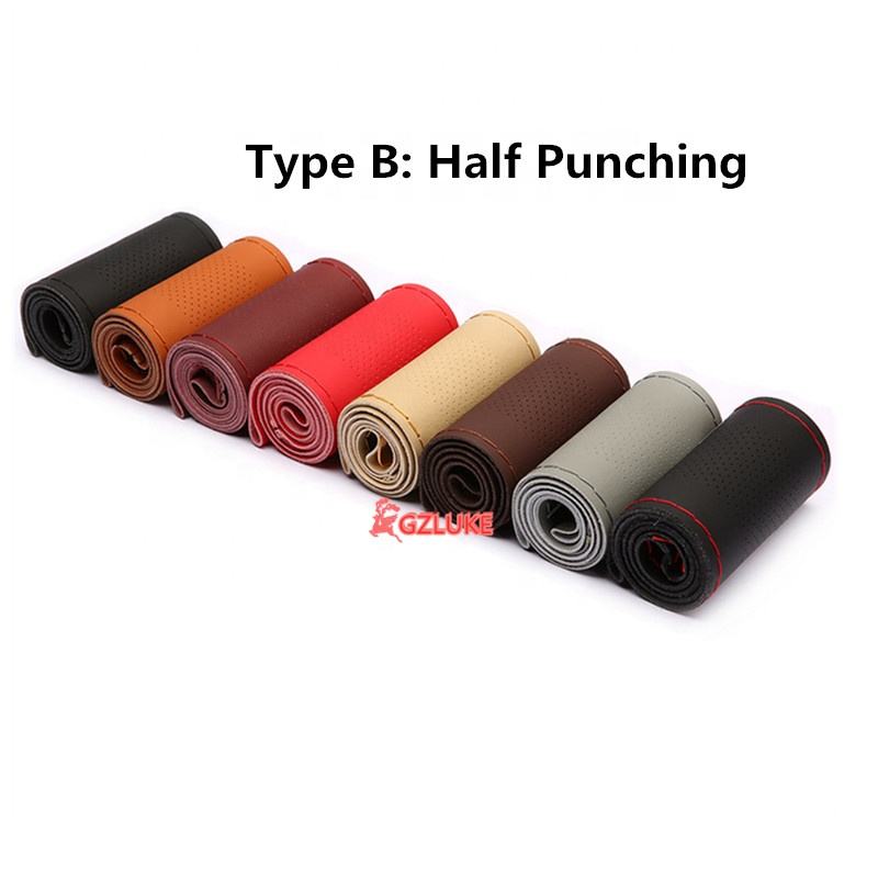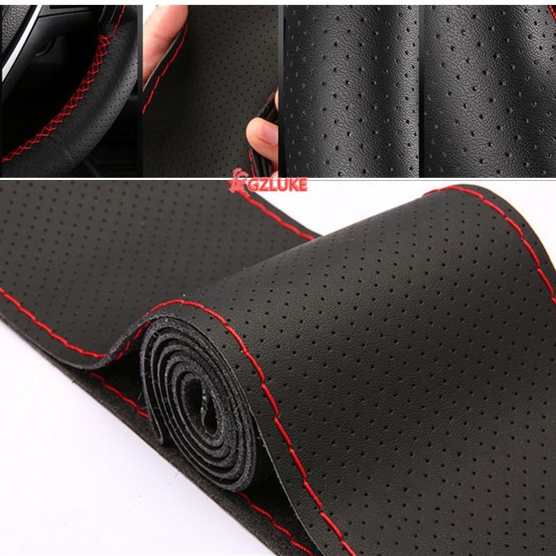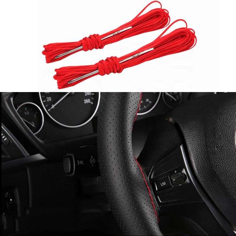 Funda de cuero de microfibra antideslizante para volante de coche, costura a mano DIY, suave, con hilo de agujas, 38CM