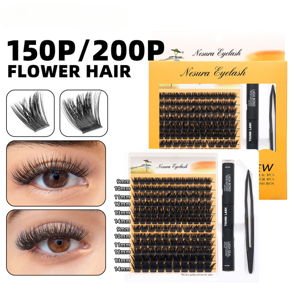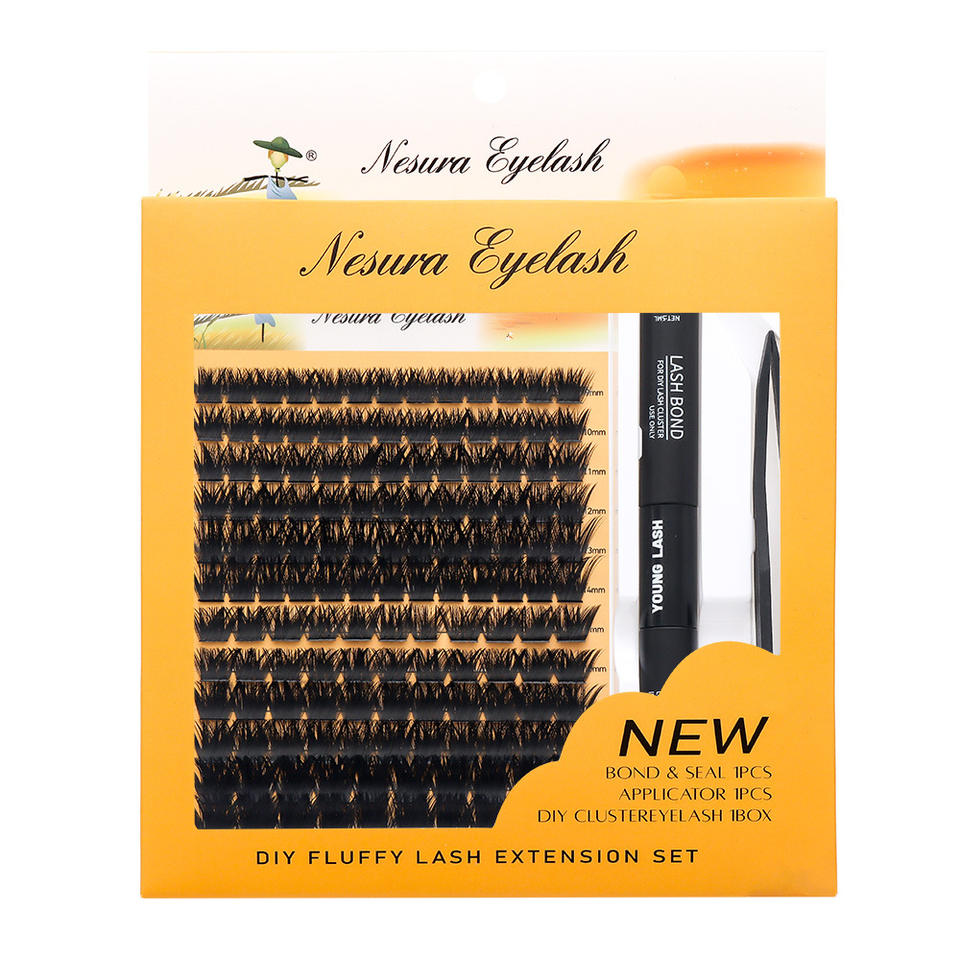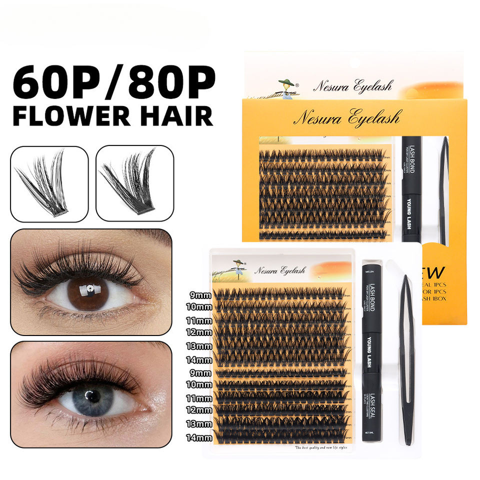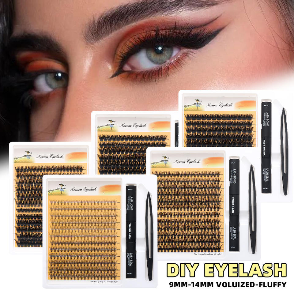 Kit de extensión de pestañas DIY para el hogar, racimos de pestañas con adhesivo sellador, pestañas segmentadas en racimo, pestañas postizas con efecto wispy, racimos de pestañas con pinzas