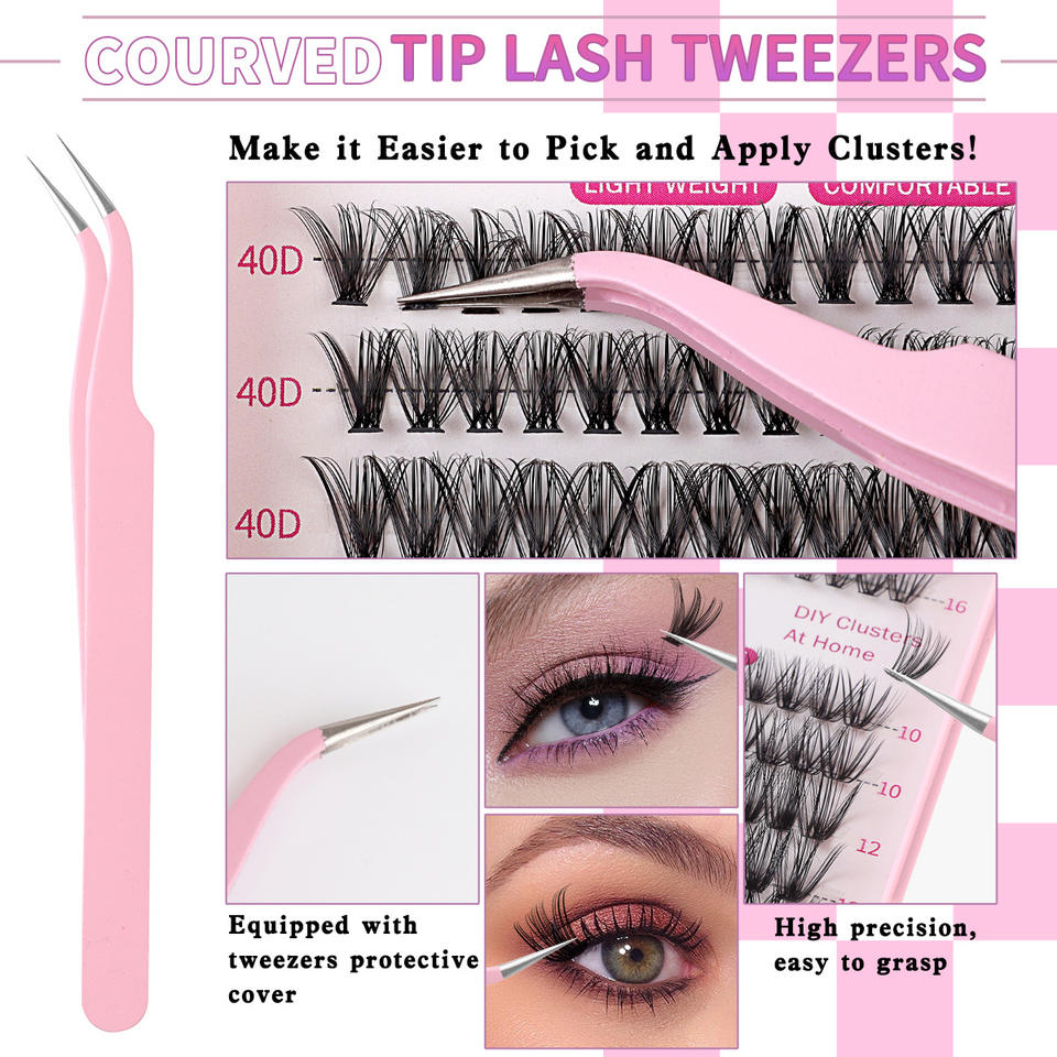 Kit de extensión de pestañas de visón y fibra D Curl hecho a mano, pestañas individuales DIY con pinzas para quitar el sello de unión, características reutilizables