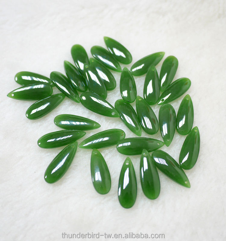 Proudct Name::Natural Green Nephrite Jade Drop 8x22mm