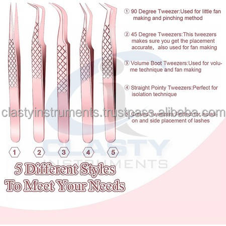 Nombre del producto:EXTENSIÓN DE PESTAÑA PINZAS CONJUNTO DE 5 PIEZAS RECTAS Y CURVAS DE PUNTA