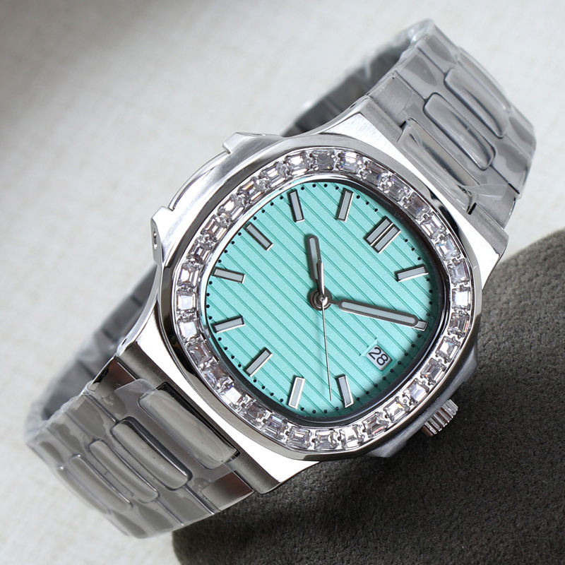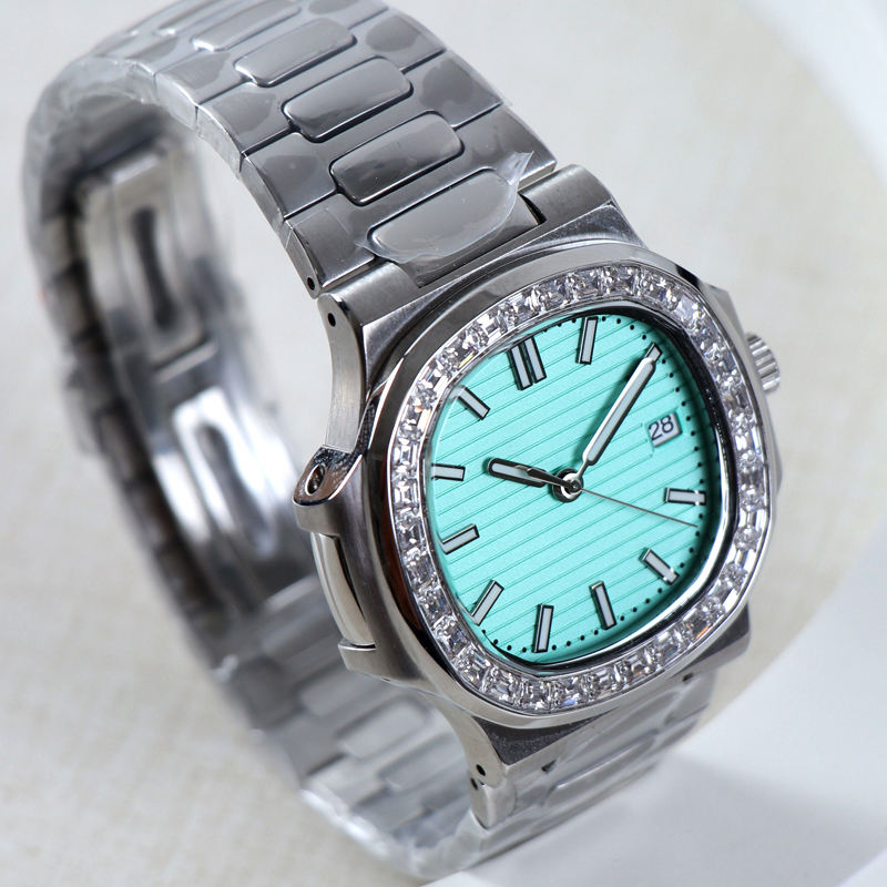Reloj con Logotipo Personalizado, Movimiento Automático de Lujo NH35, Reloj de Joyería con Diamantes, Relojes Mecánicos para Hombre, Correa de Acero, Esfera NH35, Resistente al Agua