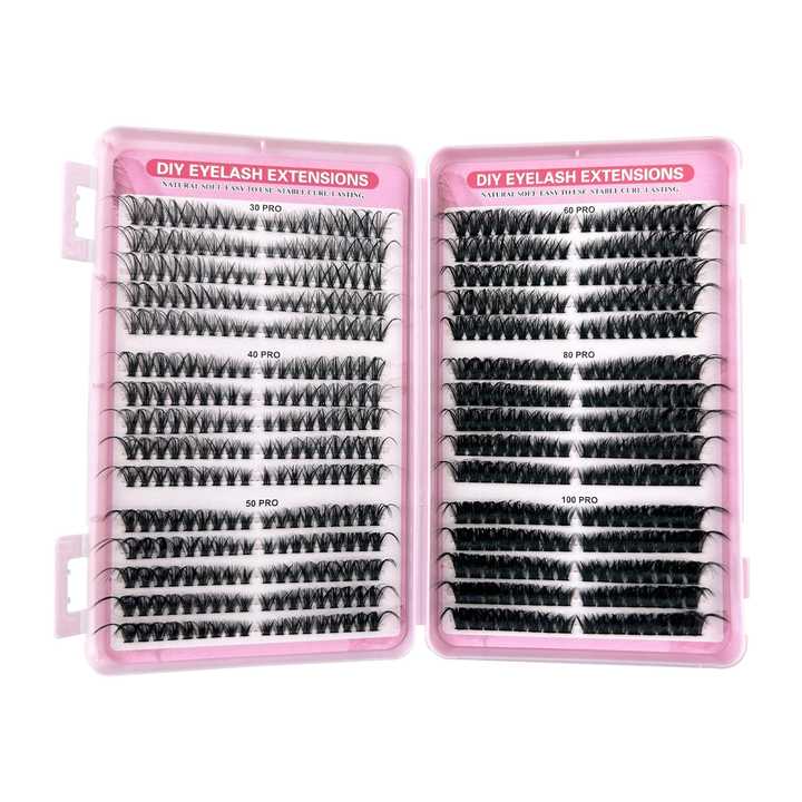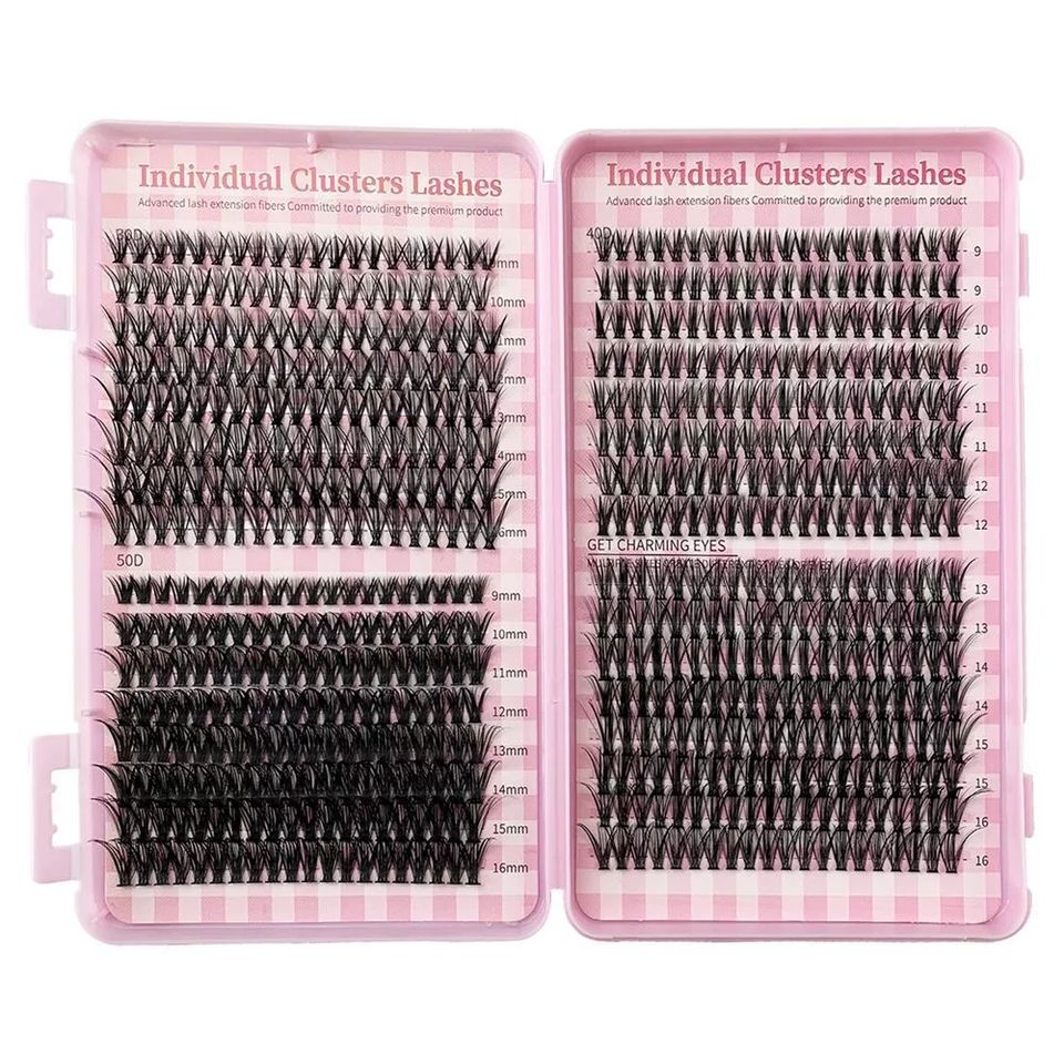 Kit DIY de extensiones de pestañas con racimos y adhesivo (bond); pestañas en racimo estilo wispy con rizo D, incluye pinzas