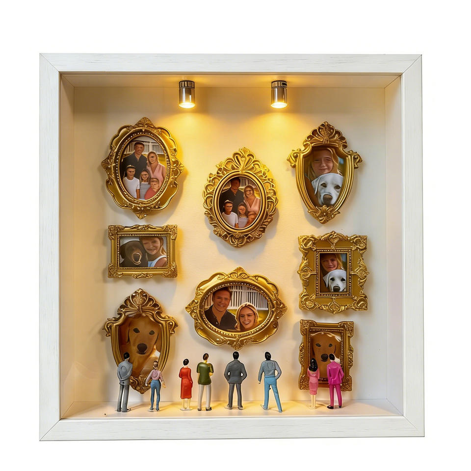 Mini Caja de Museo DIY, Marco de Fotos Cuadrado de Madera Blanco Vintage Hecho a Mano con Luz LED para Exhibición de Retratos