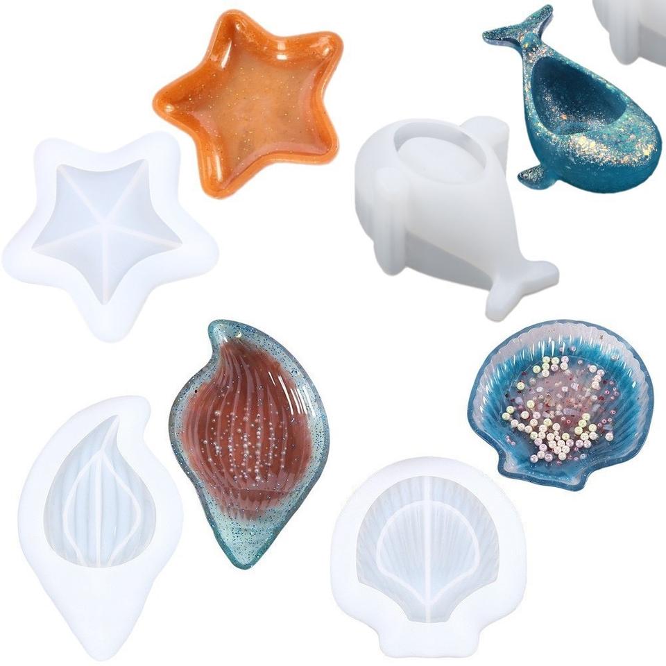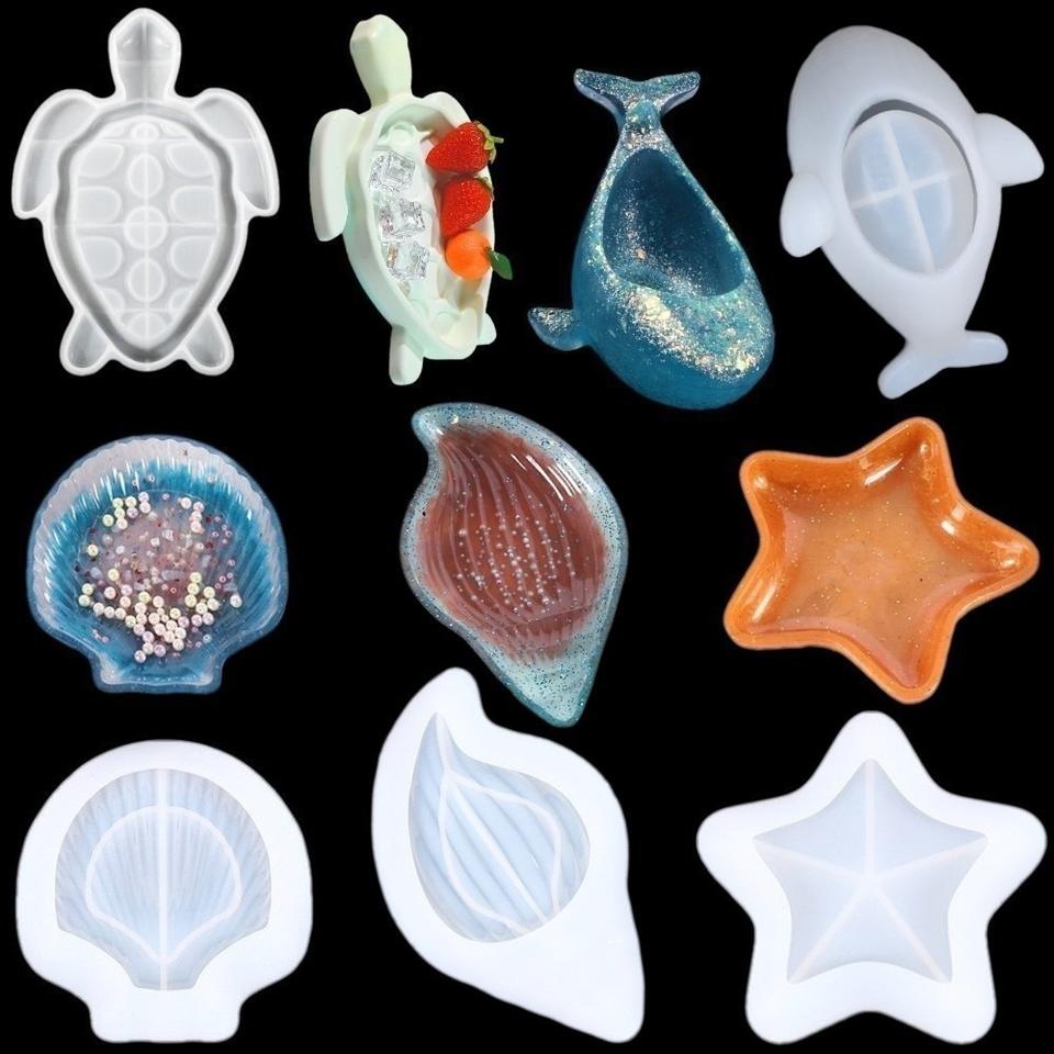 Molde Artesanal de Silicona para Manualidades, Bandeja DE LA Serie Ocean, Tortuga, Concha, Estrella de Mar, Ballena, Resina, Yeso, Organizador de Escritorio