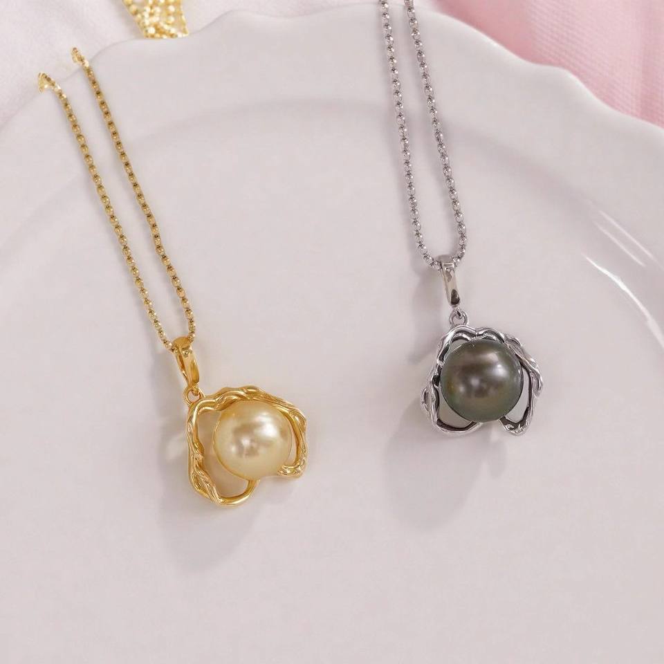 Componentes de Joyería DIY: Base de Plata S925 WENCHI para Colgante, Hebilla Hueca Sencilla para Perlas de 8-9mm, Modelo 10212