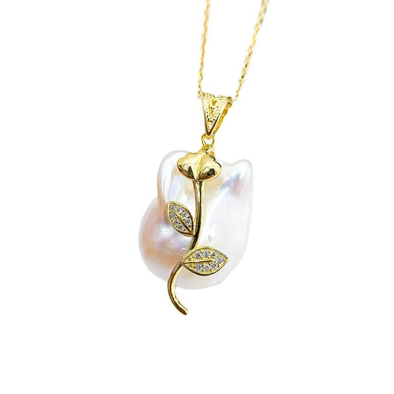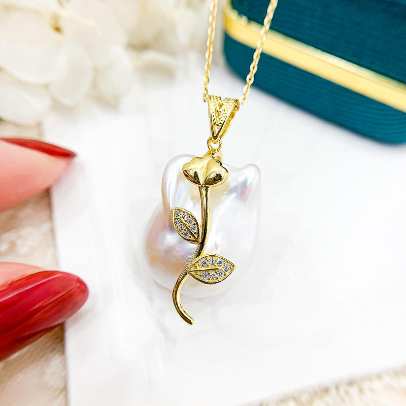 Collar con Colgante de Plata S925 Estilo Hoja con Cuentas Redondas de 12-17 mm, Bandeja Vacía para Accesorios de Oro con Patrón Numérico 30857