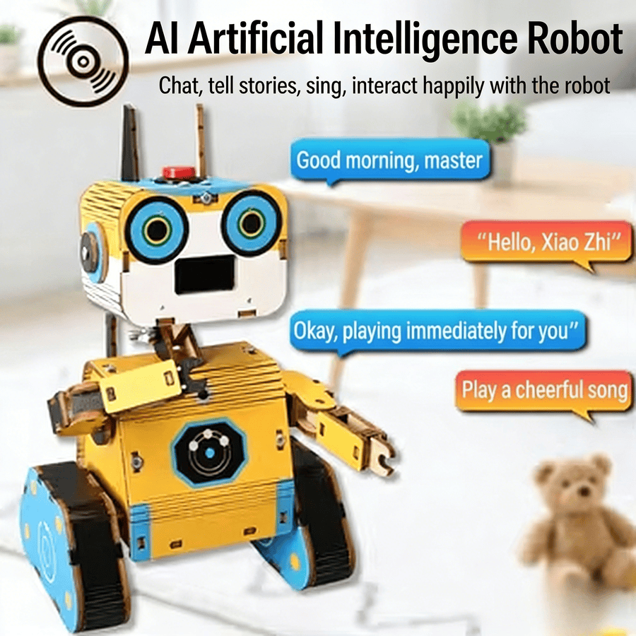 Juguete de Madera DIY Tech Little Creation con IA, Interacción Humano-Computadora, Robot Inteligente, Experimento Científico, Control por Voz, 0-3 Meses