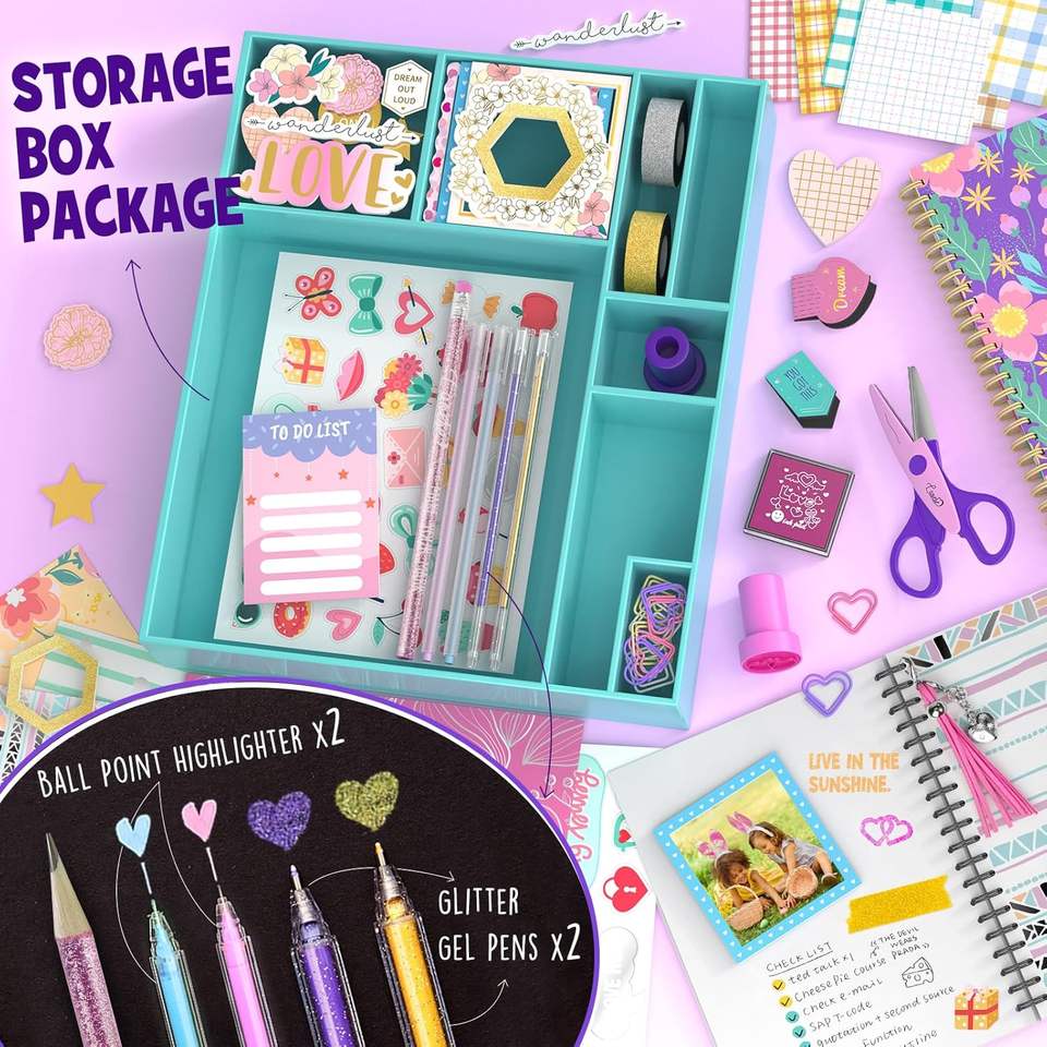 Set de Regalo de Cuaderno de Viajero DIY, Kit de Diario Vintage con Pegatinas y Cinta Washi, Material de Papelería Estético para Chicas