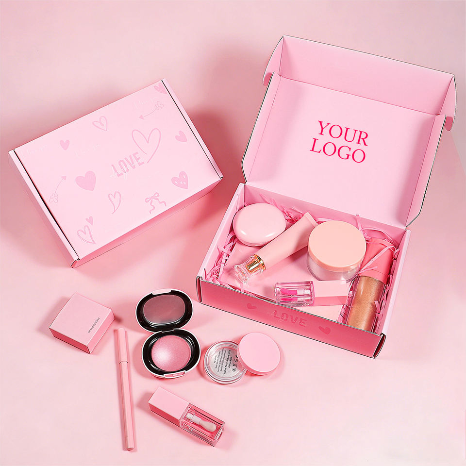 Set de Regalo de Maquillaje Vegano DIY, Base, Iluminador, Delineador de Cejas, Bálsamo Desmaquillante, Cajas de Regalo con Logotipo Personalizado y Marca Privada