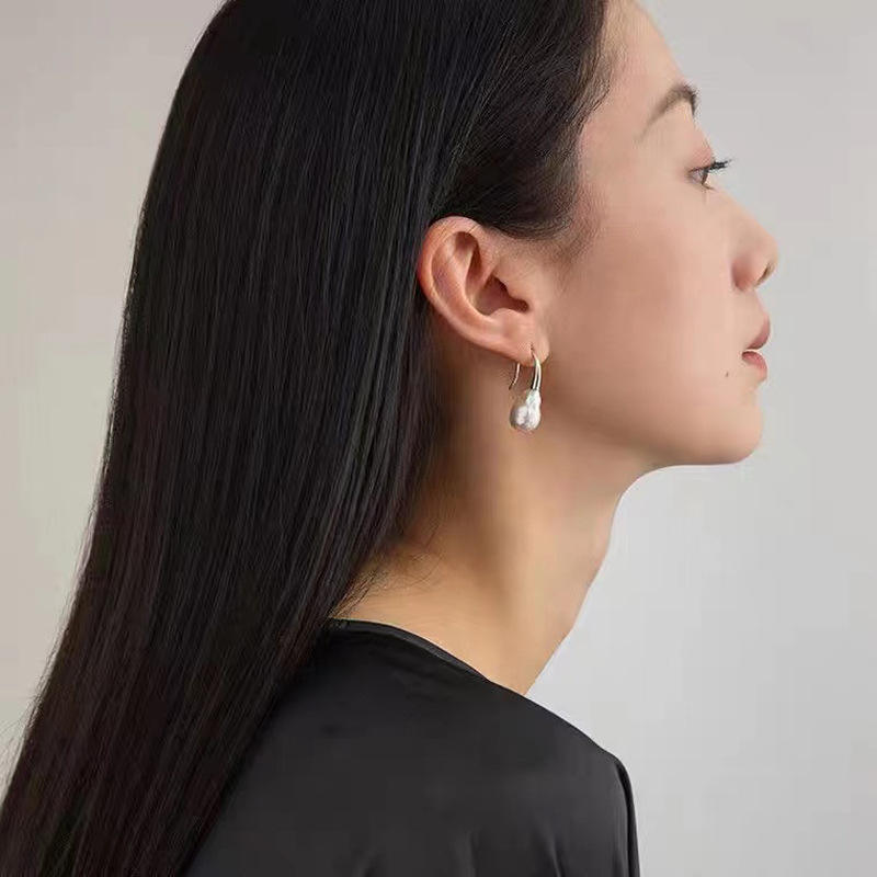 Set de Accesorios para Pendientes de Perlas DIY para Mujer con Bandeja Vacía para Pendientes de Plata S925, Cuentas Redondas de 9-12 mm, Gancho para Oreja Moderno-21774DIY