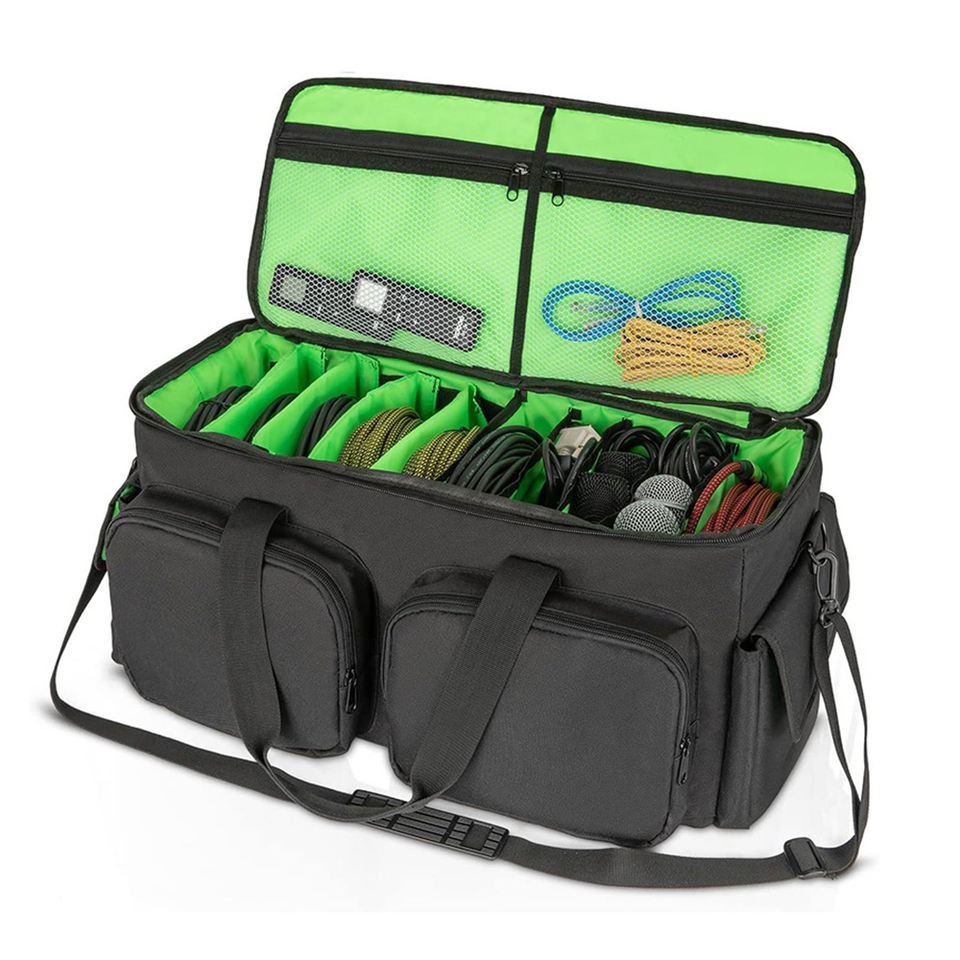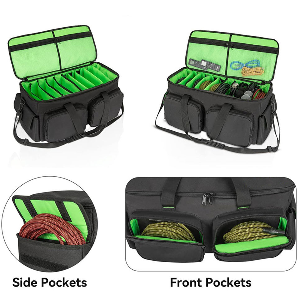 Bolsa de Transporte para Cables de DJ, con Base Acolchada Desmontable, Divisores Ajustables, para Almacenamiento de Accesorios de Cableado Musical, Audio y Visual