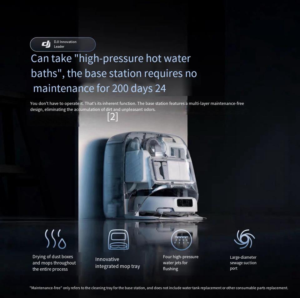 Aspiradora Robótica Inteligente DJI ROMO, 25000 Pa de Alta Succión, Limpieza Térmica Transparente, Evitación de Obstáculos, Ultravioleta para Pisos del Hogar