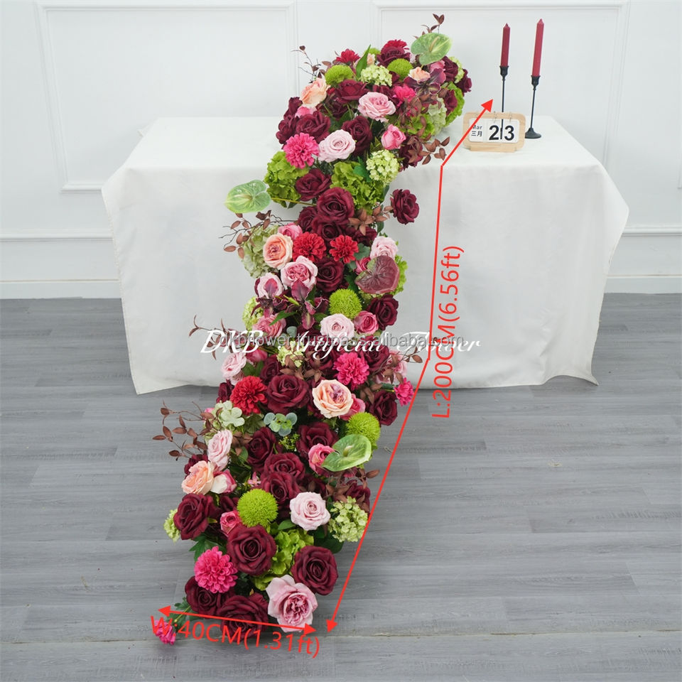 DKB Decoración de Boda Personalizada, Camino de Mesa con Flores Artificiales, Guirnalda de Boda, Camino de Mesa con Flores Artificiales