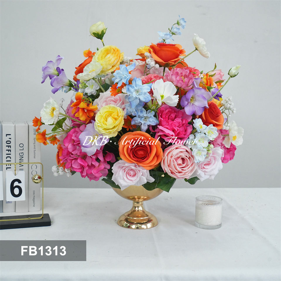 Rosas Artificiales de Seda de Alta Calidad DKB, Hortensias de Tacto Real, Bola de Flores Dorada para Decoración de Mesa de Boda, Centros de Mesa