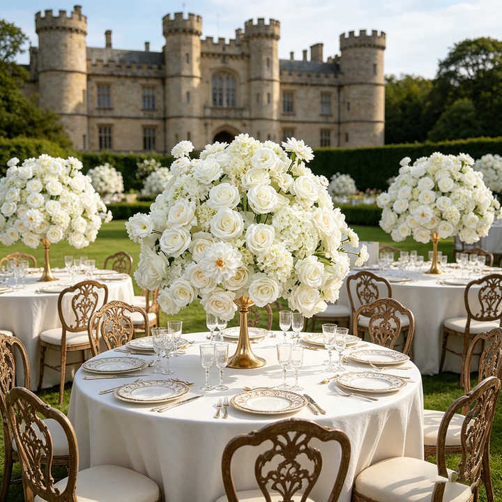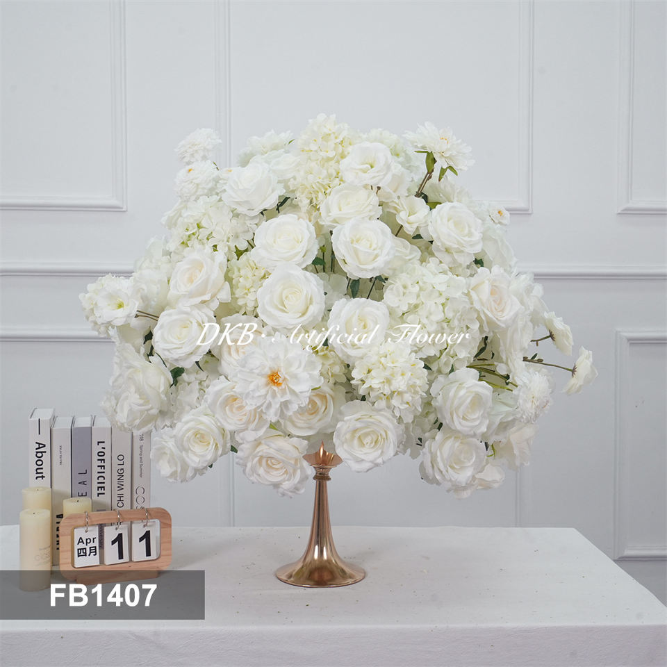 DKB Wedding Customized Artificial Real Touch Silk Roses White Large Flower Ball for Wedding Reception Table Decor