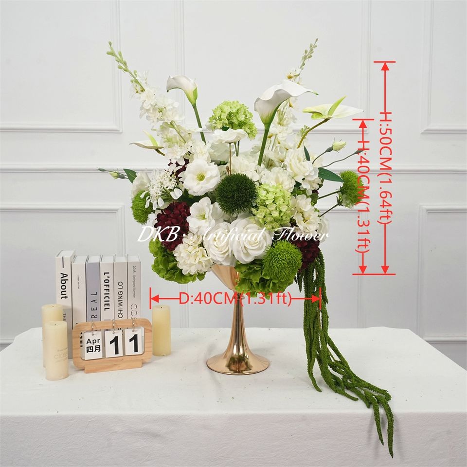 DKB - Bolas de Flores Artificiales de Hortensias y Rosas de Seda Personalizadas para Bodas, Color Borgoña y Marfil, para Centros de Mesa y Pasillos de Boda