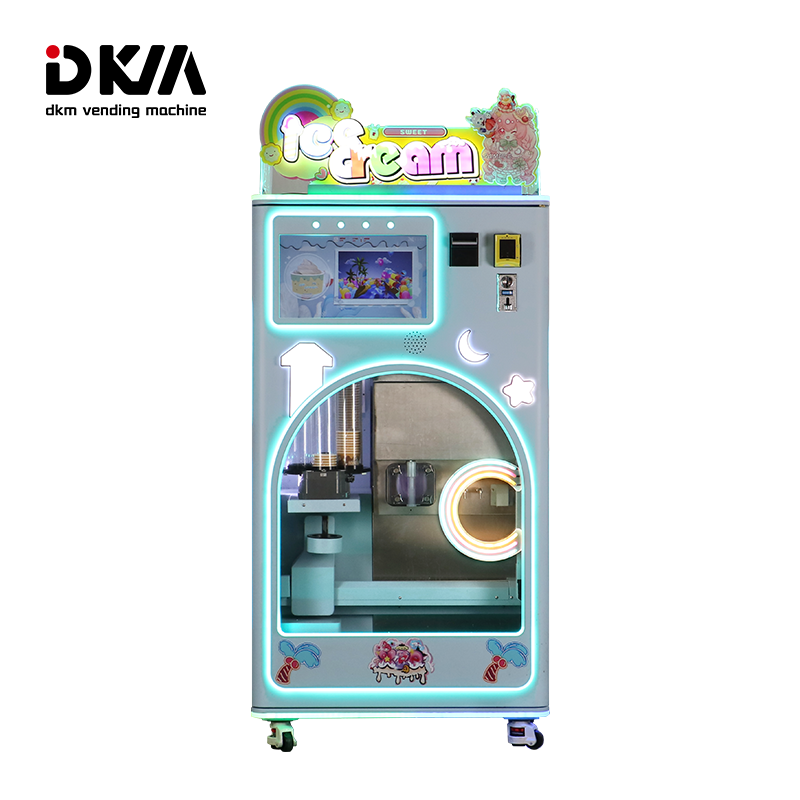 Máquina Expendedora de helados blandos robótica de golosinas congeladas completamente automática que funciona con monedas de código QR DKM a la venta con lector de tarjetas