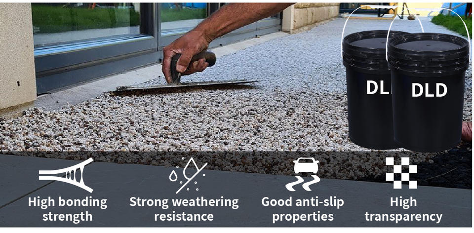 Kit de Piso de Grava y Endurecedor de Resina Epoxi de Poliuretano Permeable y Resistente al Desgaste DLD para Caminos de Entrada y Pisos Exteriores