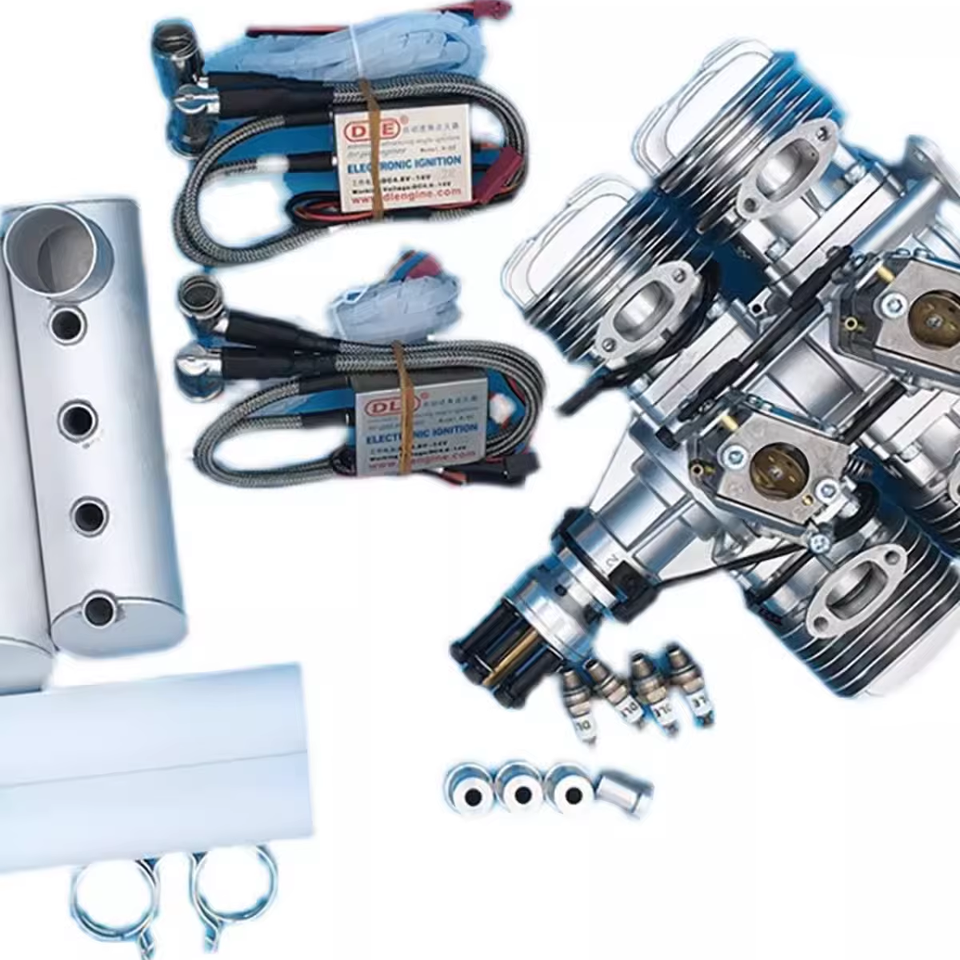 Motor de avión modelo DLE 120T4, 120CC, cuatro cilindros, dos tiempos, motor de gasolina refrigerado por aire natural, Kit de herramientas para drones de ala fija