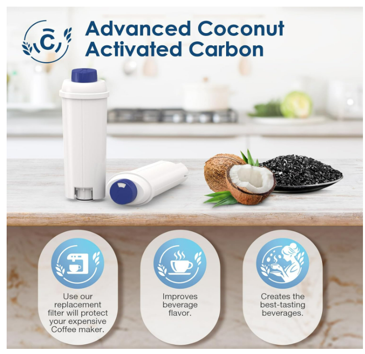 Filtro de Agua de Repuesto para Cafetera Delonghi DLSC002, Suavizante de Carbón Activado Compatible