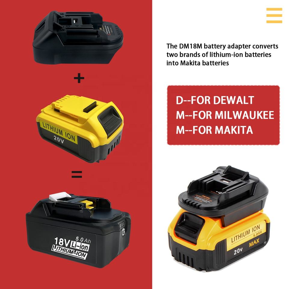 Adaptador de Batería de Iones de Litio DM18M para Baterías Dewalt Milwaukee de 18V a Herramientas Eléctricas Inalámbricas Makita de 18V Convertidor de Accesorios de Batería