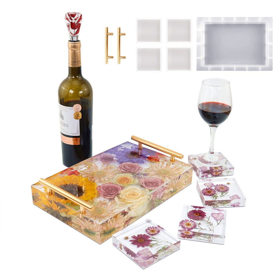 Bandeja de rodamiento de ceniza de paleta rectangular grande, bricolaje, DM342, mesa de resina epoxi, molde de silicona para posavasos de jabón con mango de Metal