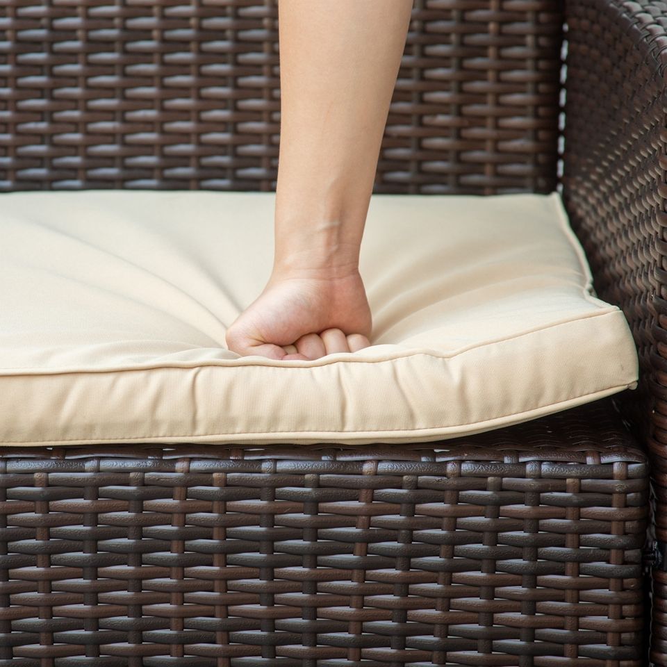 Ratán, acero, vidrio templado, cojín de poliésterMaterial